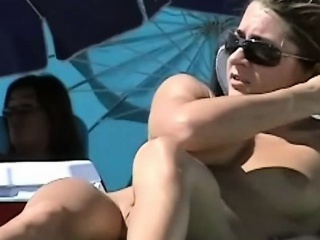 Crazy exhibition of pussy on nude beach
