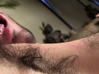 Hairy freak Dempsey strokes his boner and licks his armpits