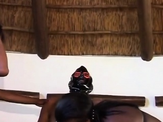Foursome blowjob and deepthroat with hot African sluts and