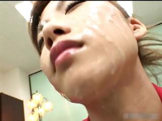 beautiful face and uncensored Japanese bukkake - you have just got to love it!