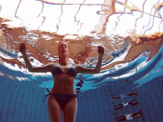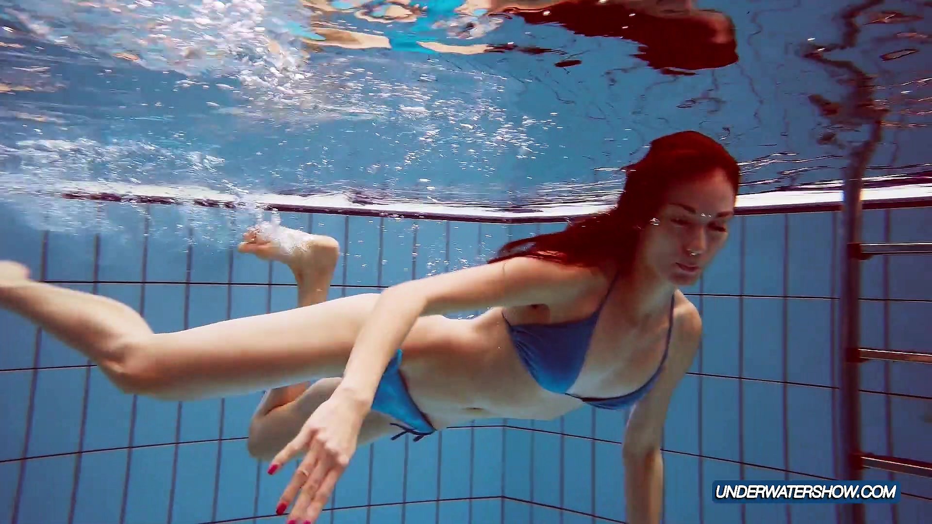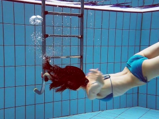 Redhead in blue bikini showing her body