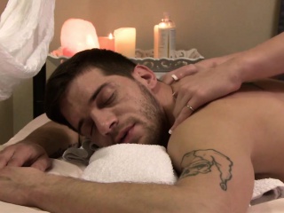 Shemale anal fucked by a massage clients hard cock