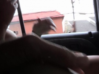 Redhead ebony rides strapon outdoors with les