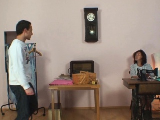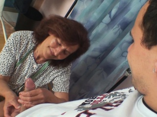 Sewing old granny pleases young guy