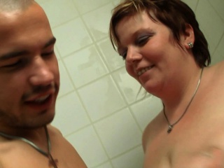 Busty plumper gives head and rides in the shower