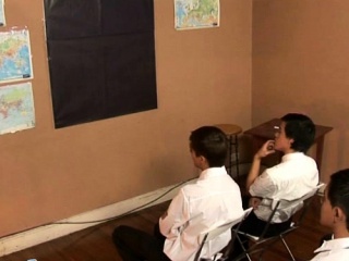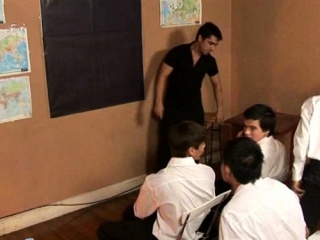 Cute twink students team up to blow their teacher