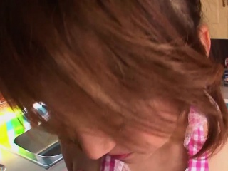 Japanese cutie gives a blowjob in the kitchen