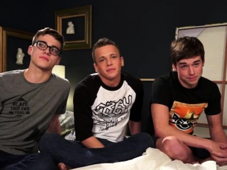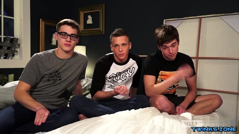 Brunette twink threesome and cumshot