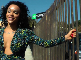 Gorgeous solo ebony tranny with pierced dick