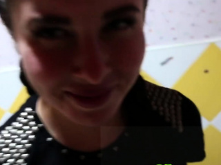 Model sucks on photographer's cock