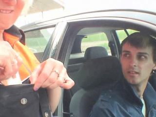 Old blonde woman double penetration in the fields