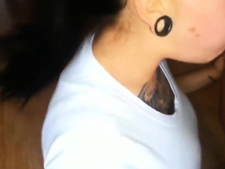 Deutsche Tattoo-Schlampe blaest tief bis zum Abkotzen
