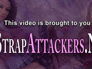 Strapon clad police domina gets spermy feet