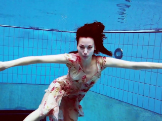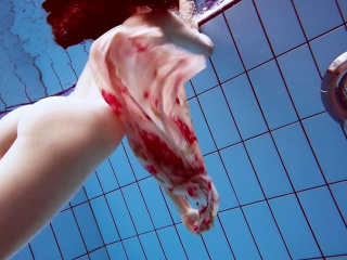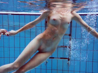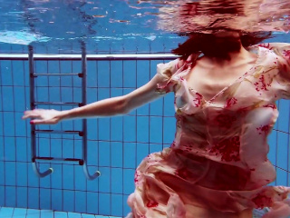 Dressed Croatian cutie Martina swims and strips