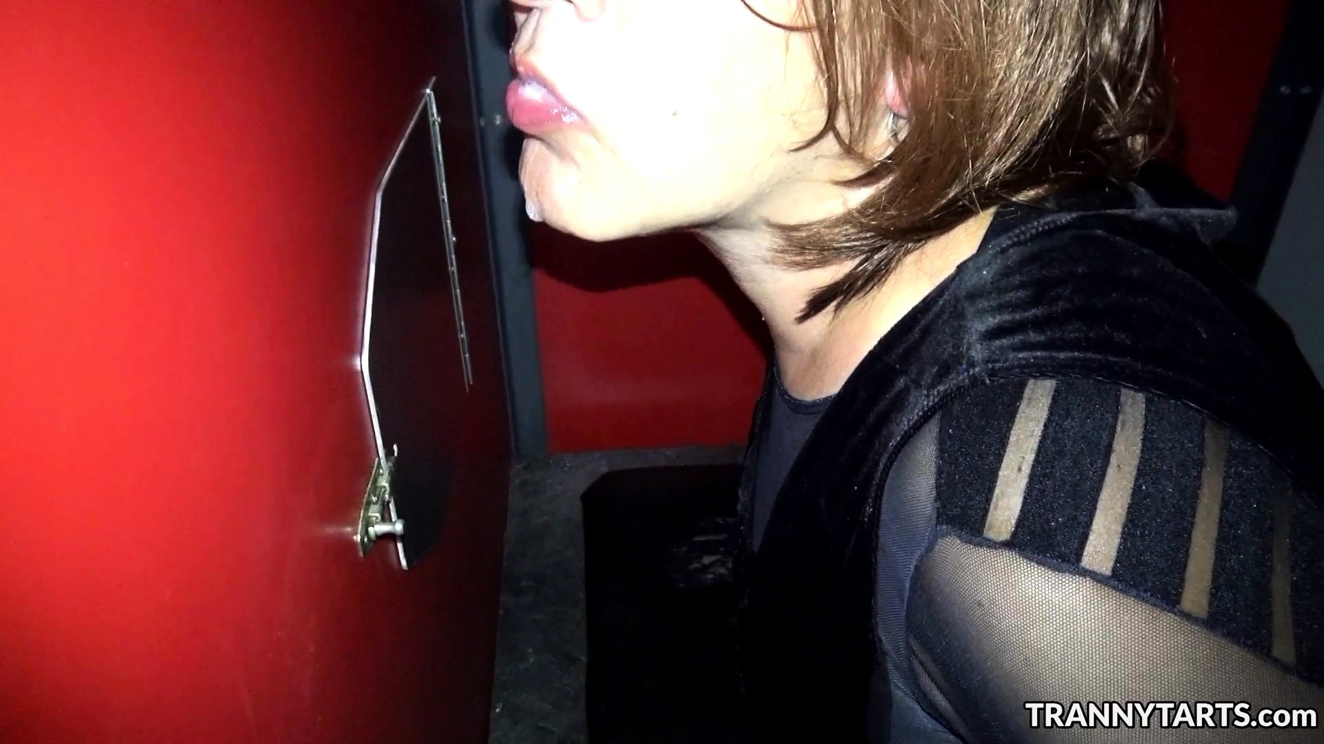 T-Girls sucking and fucking many cocks at the gloryholes