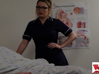 Busty nurse instructs sub guy in CFNM fetish
