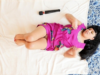 Jade pinches and teases her nipples through her light