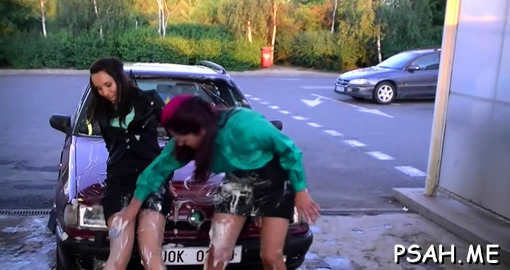 Pretty girls plays sensually with water and her milk sacks