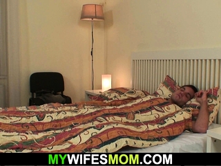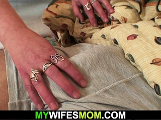 Cock-hungry motherinlaw sucks and rides his cock