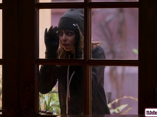 Lesbian babe makes sexy burglar squirt