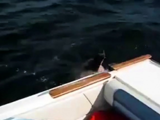 chubby woman takes a load on a boat