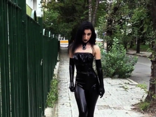 Ultra sexy goth girl wearing black lipstick in public