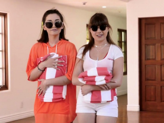 Nerd guy fucked by his two cute naughty stepsisters