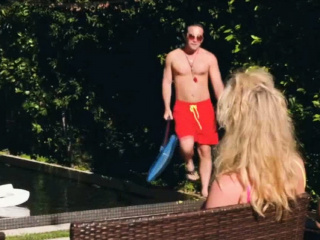 Pool guy fucks slutty MILFs in threeway