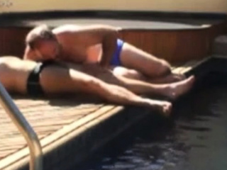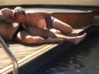 moustached daddy and bear fip flop sex by the pool