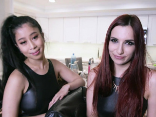 Teens in cute outfits shares a huge cock