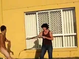 Tirando a roupa do loirinho a forca