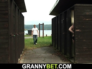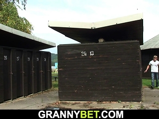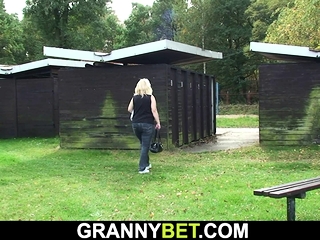 Old blonde grandma gets nailed in the public changing room