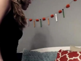 Glamour babe in lingerie teases with her panties