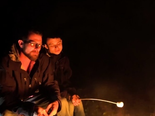 Teen and his stepdad lie naked together while camping