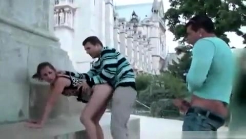 Public public sex threesome with a pregnant woman