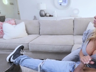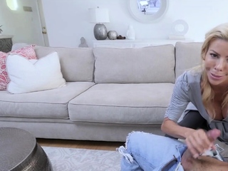 Crazy stepmom jumped on my big cock after hot handjob