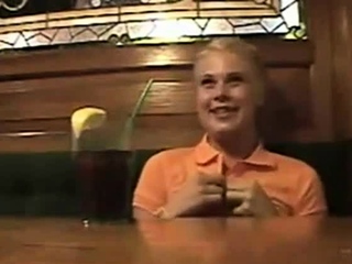Blonde Teen Masturbates in restaurant