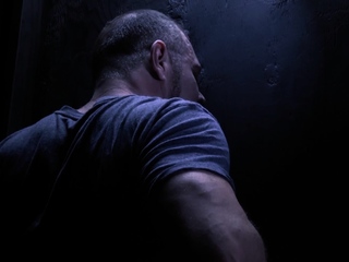 Horny teen sucks stepdads big cock through a glory hole