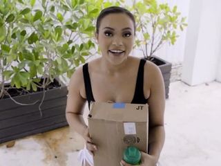 Nerdy ebony chick slobbs the studs meat