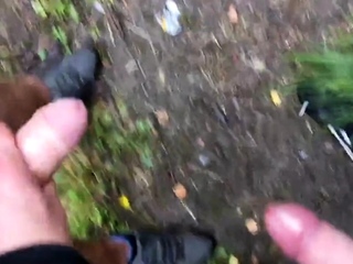 2 guys wanking down the woods