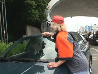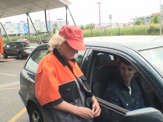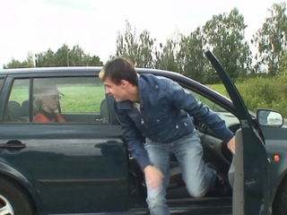 Two dudes pick up and fuck hot grandma in the fields