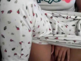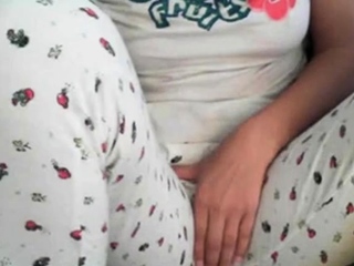 Amateur girl rubs her pussy through pajamas