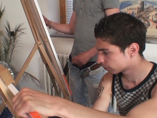 Two boys teen share old mature woman