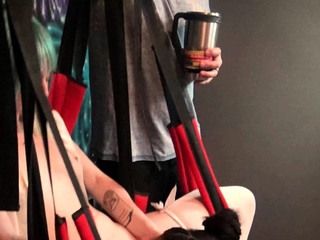 Hot cutie wearing stockings gets cunt licked in sex swing