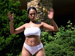 Trainer helps Katrina Moreno with her sexy out door training