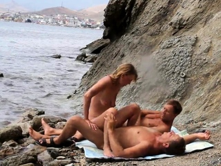 Threesome With Blonde Cougar Fuck Nudist Beach Spycam