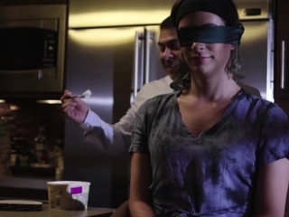 Busty blonde ts Janie Blade analed on the kitchen table
