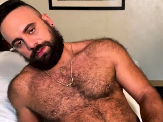 Furry muscle daddy stokes one for the camera