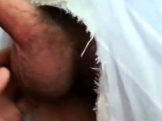 Filling the cocksucker's mouth at the homemade glory hole