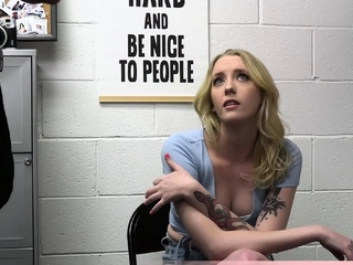 Cute blonde shoplifter pays with pussy